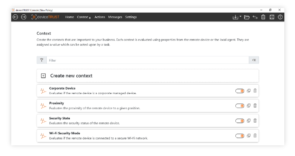 Define and maintain a granular, always up-to-date context for every device. Leveraging device-related information, you can create custom contexts tailored to your needs, whether it’s a single data point or a combination of multiple properties. This flexible, easy-to-configure framework continuously evaluates all device properties, ensuring the information you need for access management is always current and available to support your zero trust approach.